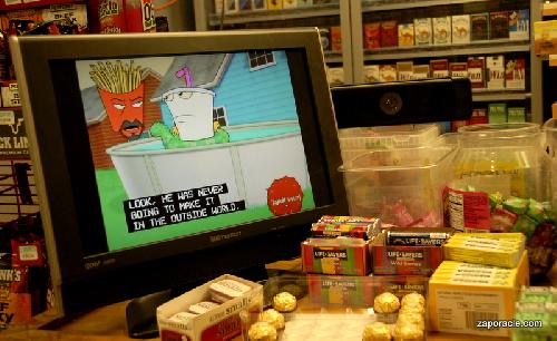 A moment of strange video late at night at the "Smelly Deli," 13th Street in Boulder